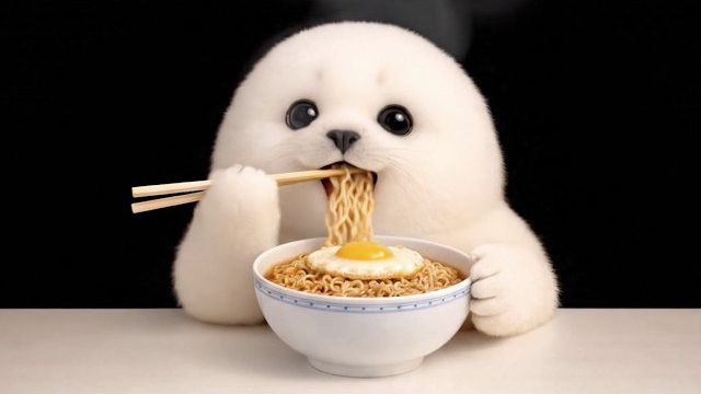 Тюлень и рамэн с яйцом нежнейшее ASMR для релакса
