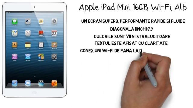 Pentru mai multe detalii click aici: http://bit.ly/1yv5tAJ Apple iPad Mini, 16GB, Wi-Fi, Alb