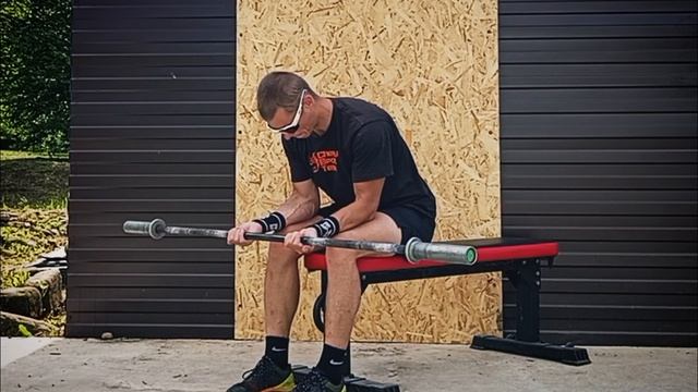 Скручивание кистей со штангой сидя