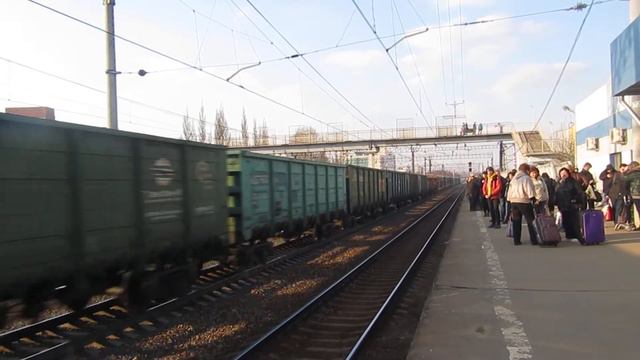 Электропоезд ЭД4М-0091 Рэкс, ВЛ10У-863 с грузовым поездом станция Обнинское 7.04.2019