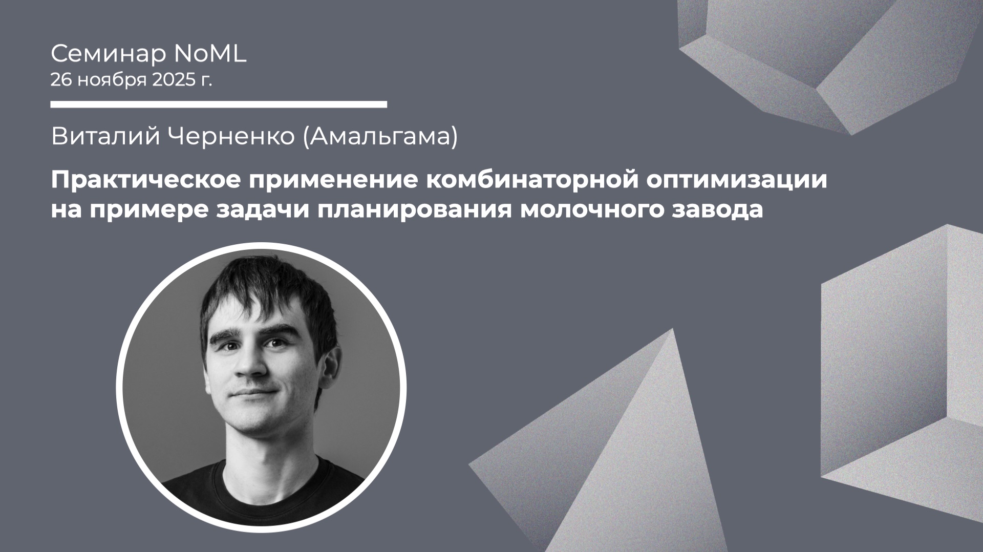 В ходе доклада мы пройдем весь путь решения задачи: — декомпозиция предметной области и исключение лишних сущностей; — сбор данных; — выделение правил построения плана; — построение допустимых планов; — тестирование простых и граничных случаев; — выбор наилучшего плана из тысяч построенных допустимых. Каждый шаг демонстрации будет сопровождаться живым примером в созданном нами приложении на платформе Amalgama Platform. --- Вопросы и комментарии — в Telegram-чате сообщества NoML: https://t.me/noml_community Презентация и материалы всех мероприятий — в базе знаний: https://gitflic.ru/project/noml-community/noml-kb Анонсы новых мероприятий и другая полезная информация — в канале сообщества NoML: https://t.me/noml_digest