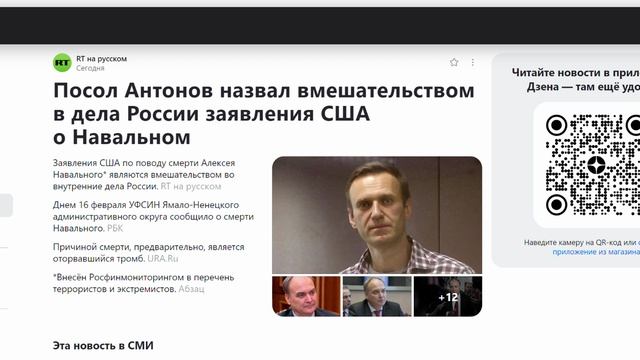 Посол Антонов назвал вмешательством в дела России заявления США о Навальном