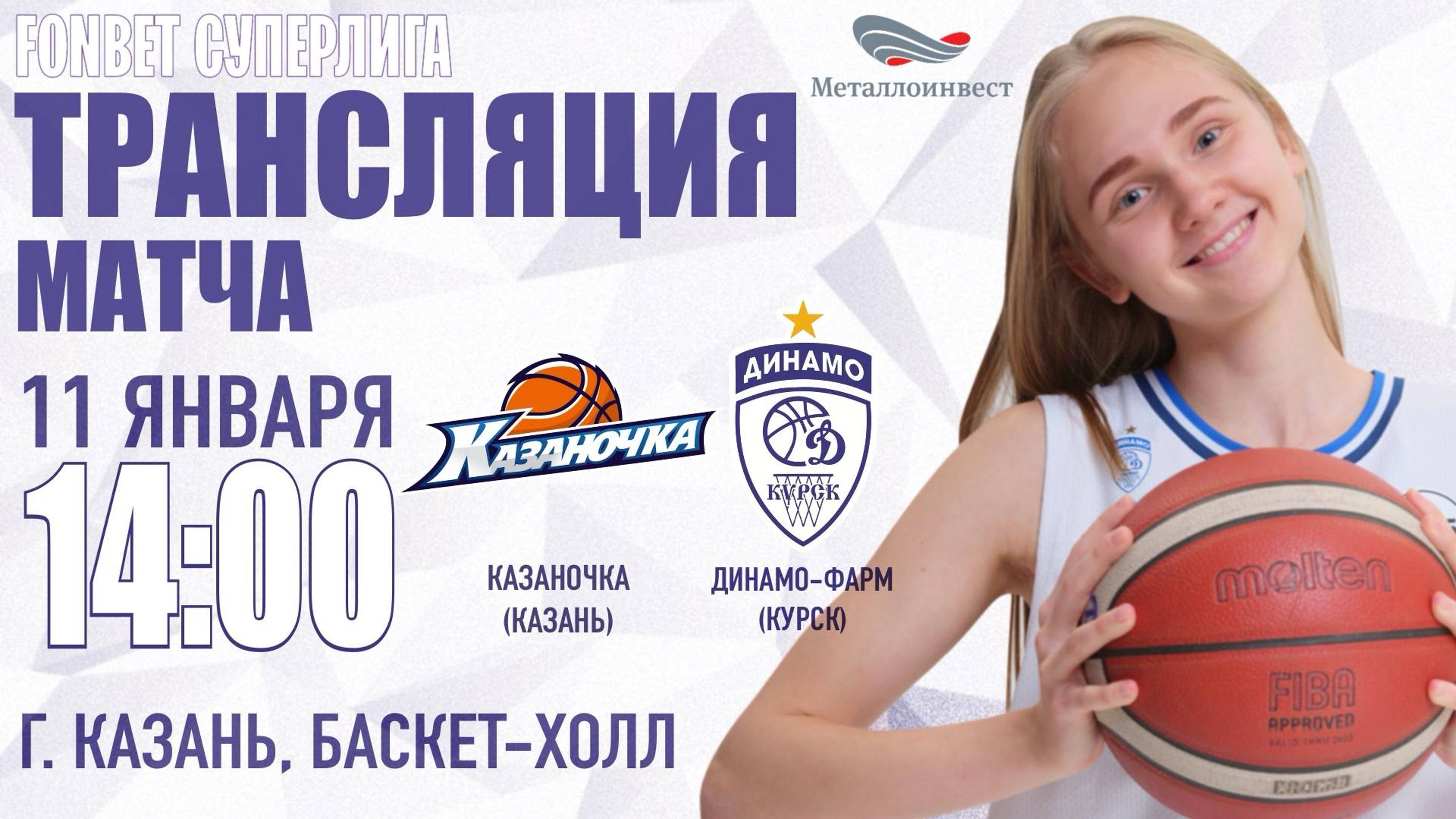 11.01.2025 14:00 Казаночка (Казань) - Динамо-Фарм (Курск) ФОНБЕТ ЧЕМПИОНАТ РОССИИ - СУПЕРЛИГА Статистика матча: https://competitions.russiabasket.ru/superliga/women/game/?id=837475