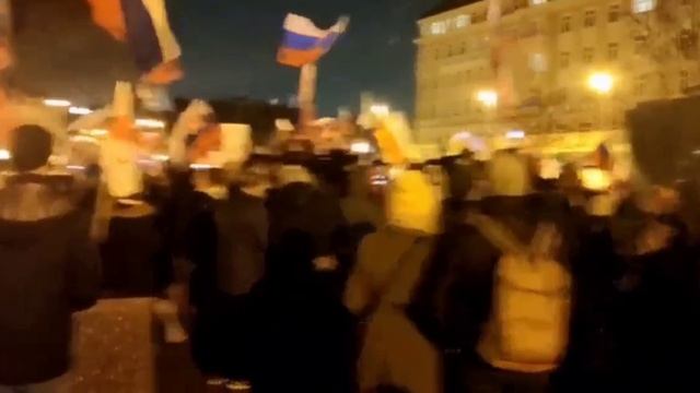 В Словакии перед посольством США тысячи людей поют русские песни!