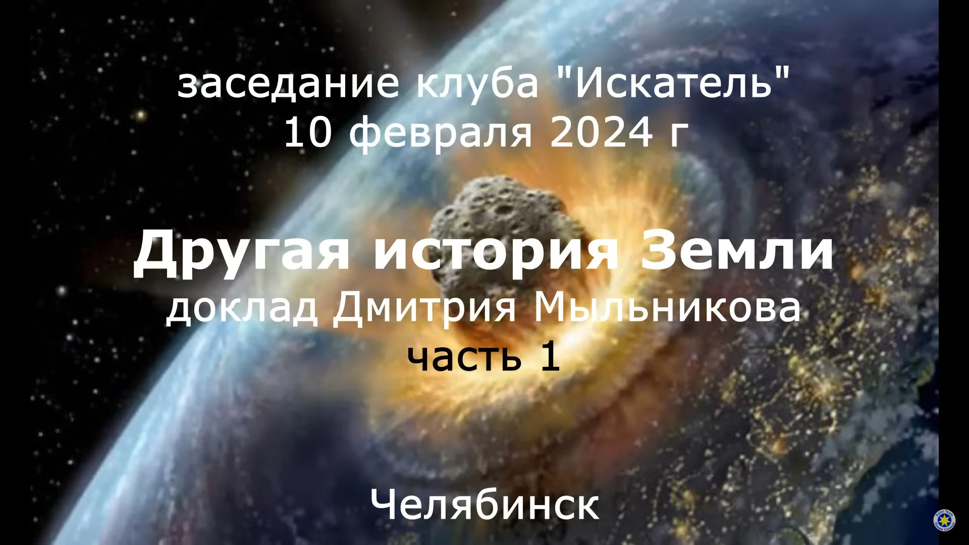 Первая часть записи с заседания клуба "Искатель" 10 февраля 2024 года. Доклад Дмитрия Мыльникова "Другая история Земли".