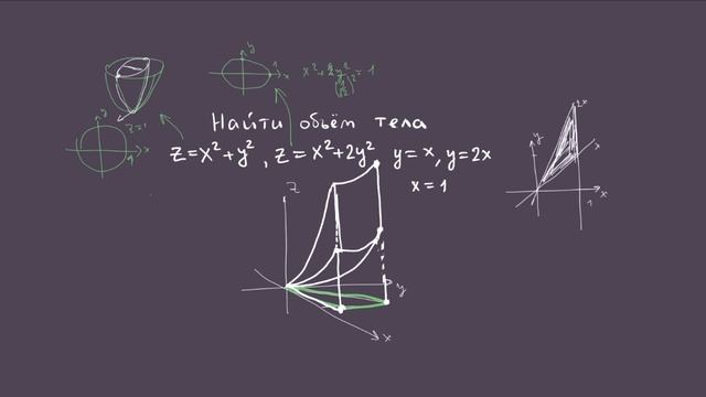 Объём тела, ограниченного двумя параболоидами и треугольным цилиндром. Берман 3610