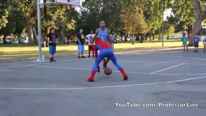 Спайдермэн уделывает всех в баскетболе в парке)