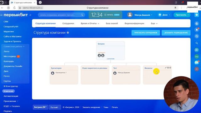 Урок 2. Настройка орг. структуры в CRM Битрикс24 от компании «Первый Бит»