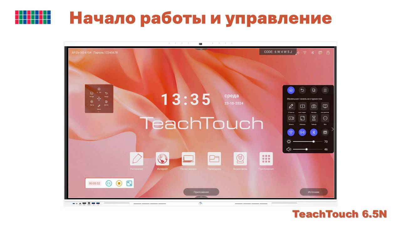Основные функции и настройки. TeachTouch 6.5N