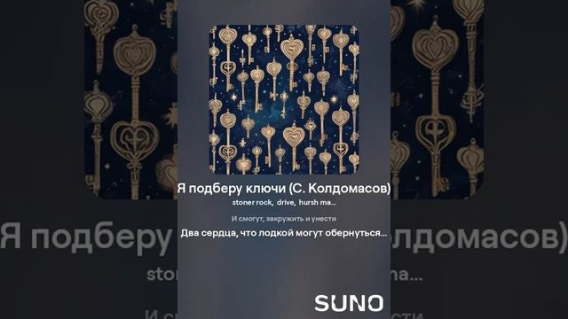 Стоунер рок! Текст - С. Колдомасов Аудио и визуал - Suno AI Стихи: Сергей Колдомасов - "Я подберу ключи..." (2019/09/23) (на сайте стихи.ру). Никакой вульгарщины или пропаганды, все совпадения чисто совпадения!