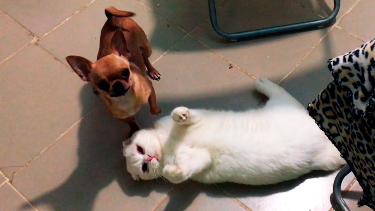 Игры чихуахуа с белым котом