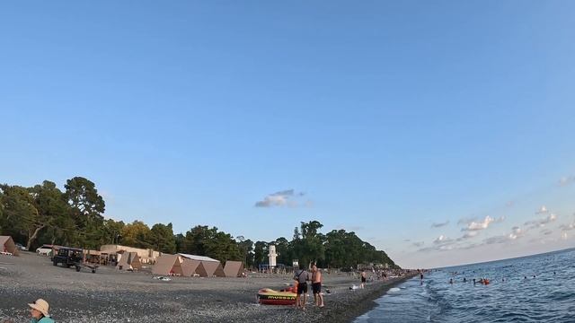 Самолёт идёт на посадку вид с пляжа посёлка Агудзера в Абхазии У башни Смецкого