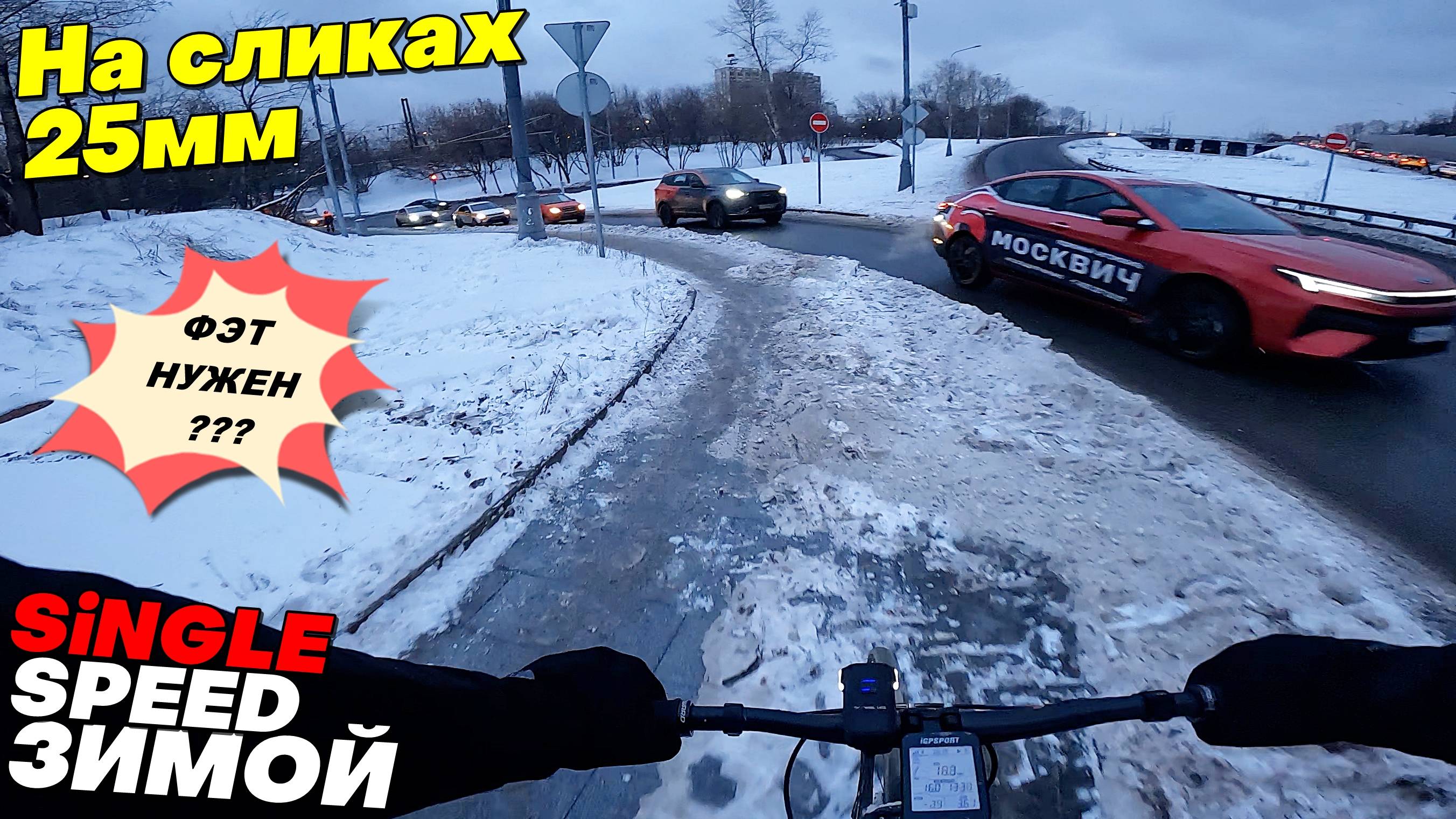 Зимой на 25мм Покрышках. Еду по Городу на Велосипеде Сингле Фиксе