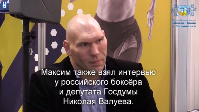 В воскресенье 11 ноября 2018 Школа права и экономики участвовала в международном фестивале спорта и здорового образа жизни SN Pro Expo. Это был настоящий праздник для любителей спорта! Мероприятие посетили выдающиеся спортсмены, а также деятели политики и культуры. Учитель физкультуры нашей школы Сергей Викторович Кузнецов представлял на фестивале свою методику скоростно-силовой подготовки СПРИНТ-ПАУЭР. Он проводил турнир среди юниоров по скоростно-силовому экстриму СПРИНТ-ПАУЭР версии LIVE short. Ученик 11 класса Максим Гураевский принял участие в этих соревнованиях и поделился с нами своими впечатлениями об этом мероприятии. Максим также взял интервью у выдающегося российского боксёра и депутата Госдумы Николая Валуева. Николай Сергеевич является выпускником учредителя Школы права и экономики - Российского государственного университета правосудия.