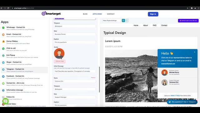Get Telegram Chat plugin: https://smartarget.online/demo.html?app=telegram&source=youtube It takes only few minutes to add Telegram Chat on your html site and it's completely free. By using Smartarget Telegram you can increase user engagement and sell more!