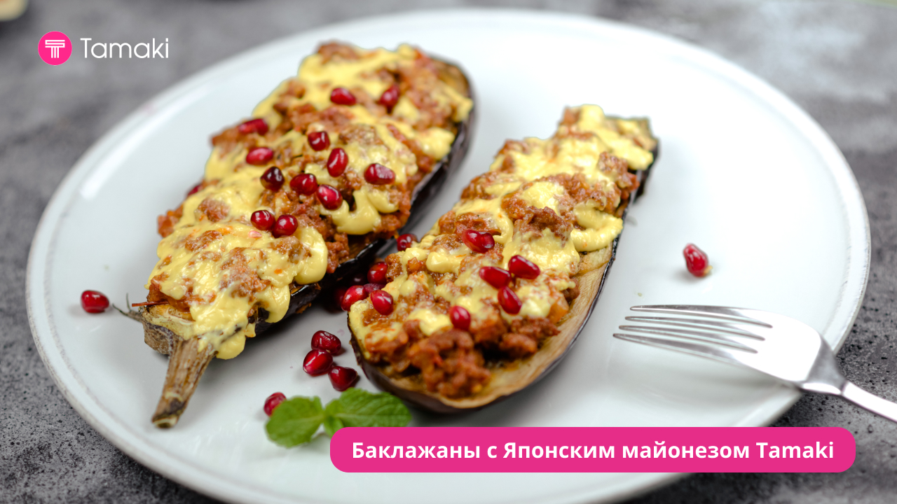Баклажаны с Японским майонезом Tamaki Ингредиенты: Баклажан - 300г Лук красный - 50г Фарш говяжий - 500г Помидор - 150г Японский майонез Tamaki - 30г Гранат зерна - 15г Масло растительное - 30г Соль - 3г Перец черный молотый - 3г Способ приготовления: 1. Разрежьте баклажан пополам. Сделайте на мякоти надрезы, посолите и поперчите. 2. Запекайте в духовке при температуре 180С 20-25 минут. 3. Измельчите лук и помидоры. Разогрейте сковороду, влейте масло растительное. Обжарьте лук, добавьте фарш и помидоры, готовьте 20 минут. 4. Достаньте баклажан из духовки. Сверху распределите фарш, полейте Японским майонезом Tamaki. 5. Запекайте в духовке еще 10-15 минут. 6. Посыпьте зернами граната. VK: https://vk.com/tamakirus Яндекс Дзен: https://dzen.ru/tamaki Сайт: https://tamaki.ru/ #готовимвкусно #простыерецепты #быстрыерецепты #рецепты #вкусныерецепты #простойрецепт #готовка #рецепт #майонез #закуска #праздник #tamaki #шеф #повар #ресторан #кафе #вкусно #тренд