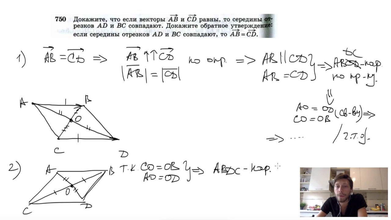 №750. Докажите, что если векторы АВ и СD равны, то середины отрезков AD и ВС совпадают. Докажите обратное утверждение: если середины отрезков AD и ВС совпадают, то вектор АВ = вектору СD. Мой второй канал для подготовки к ЕГЭ и ОГЭ - https://www.youtube.com/ЕвгенийСумин Инстаграм - https://www.instagram.com/EGE_OGE.math VK - https://vk.com/evgeniysumin FB - https://www.facebook.com/EvgeniySumin