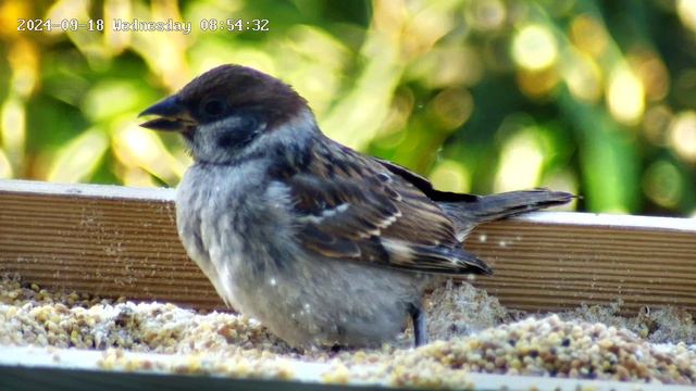Полевой воробей в кормушке