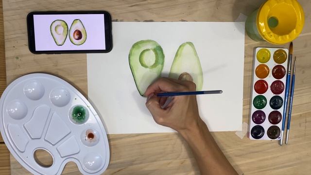 Здравствуйте дорогие ученики! На этом уроке по живописи мы нарисуем плод авокадо в разрезе. - Задачи: передача объема через цвет. Понятие тени собственной и падающей, света, полутени, цветовых отношений и контраста. - Материалы: бумага А4, карандаш, ластик, акварельные краски, кисти.
