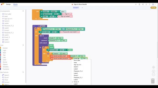 Sign in Screen with Stored Variables - Thunkable Drag and Drop UI