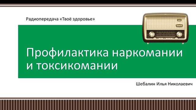 Радиопередача "Твое здоровье", г. Бийск Шебалин Илья Николаевич Куратор муниципальной программы "Профилактика наркомании и токсикомании" в г. Бийске