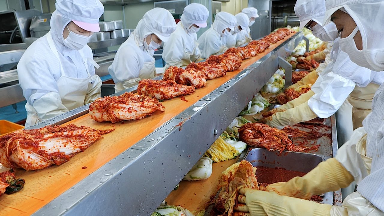 приготовление кимчи на корейской фабрике кимчи - корейская кухня.