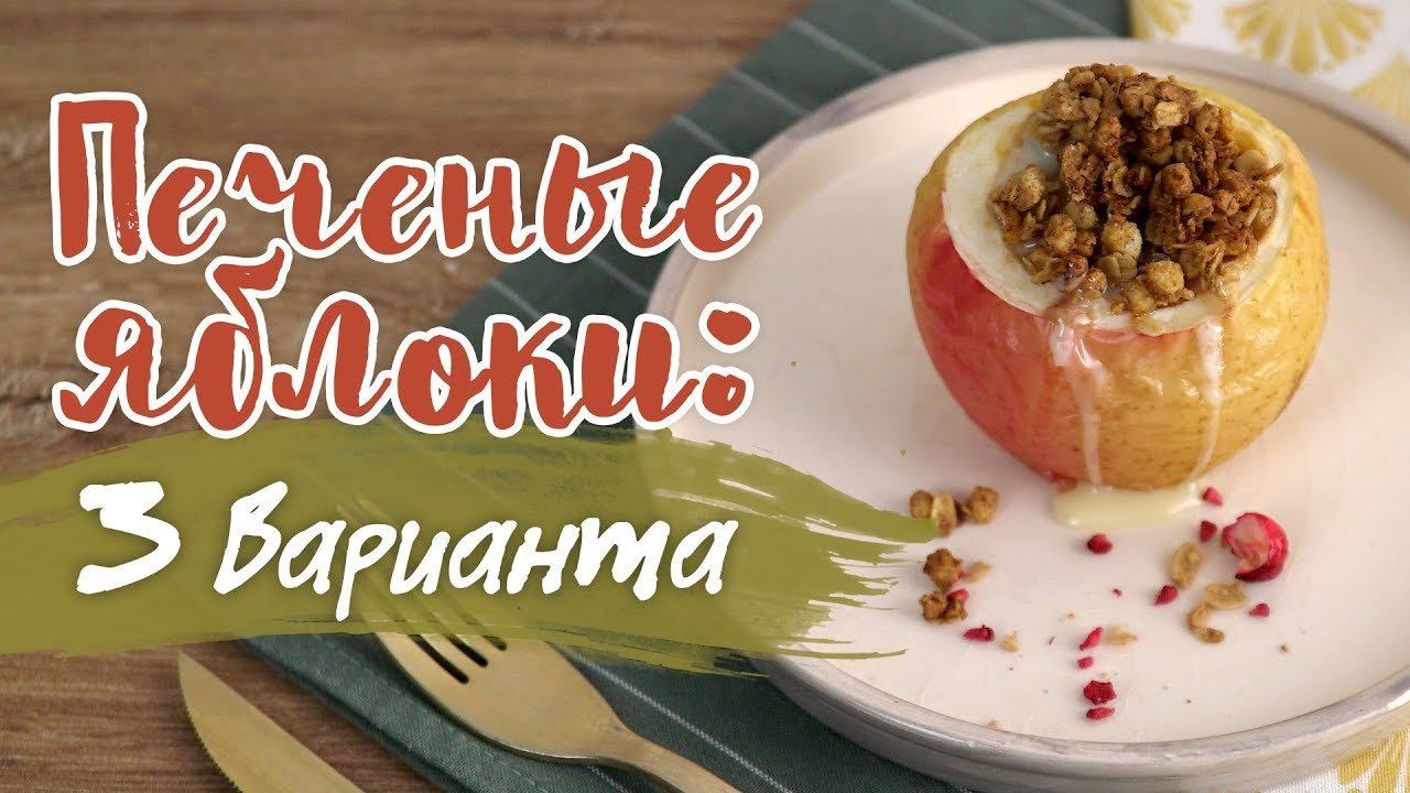 Целых три отменных рецепта запеченных яблок на нашем канале. Встречайте осень вкусно вместе с Bon Appetit! Яблоки с гранолой Ингредиенты: Яблоко — 2 шт. Корица — по вкусу Кукурузный крахмал — ½ ст. л. Сгущенное молоко — 2 ст. л. Гранола — 2 ст. л. На 100 г — 131 ккал Приготовление: Из яблок удаляем сердцевину и часть мякоти. Мякоть измельчаем. Соединяем с молоком, корицей и крахмалом. Начиняем яблоки смесью и присыпаем гранолой. Запекаем (180 °C) 15 минут. Яблоки с клюквой Ингредиенты: Яблоко — 2 шт. Клюква — 90 г Мед — 30 г Сливочное масло — 15 г Корица — 2 палочки На 100 г — 89 ккал Приготовление: С яблок срезаем верхушки. Удаляем сердцевину и часть мякоти. Заполняем яблоки клюквой. Добавляем мед, масло и корицу. Накрываем верхушками. Запекаем (180 °C) 15 минут. Яблоки в тесте Ингредиенты: Яблоко — 2 шт. Орехи, сухофрукты — по 35 г Сахар — 20 г Корица — по вкусу Сливочное масло — 15 г Песочное тесто — 200 г Мед — для подачи На 100 г — 243 ккал Приготовление: Удаляем из яблок сердцевину. Измельчаем орехи и сухофрукты. Смешиваем с маслом, корицей и сахаром. Начиняем яблоки смесью. Делим тесто на 2 части и раскатываем. Оборачиваем яблоки тестом, удаляем излишки. Подготавливаем из остатков теста декор. Запекаем (160 °C) 20 минут или до румяной корочки. При подаче поливаем медом. Рецепты Bon Appetit — видеорецепты на каждый день! Мы в социальных сетях: ВКонтакте: https://vk.com/bon Facebook: https://www.facebook.com/bono.appetito Instagram: http://instagram.com/bon_appetito