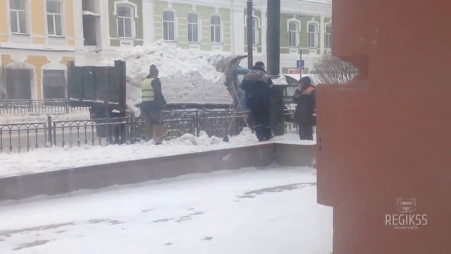 Студенты Омского медицинского университета сняли работу коммунальщиков, лопатой выгружавших снег на улице Ленина.