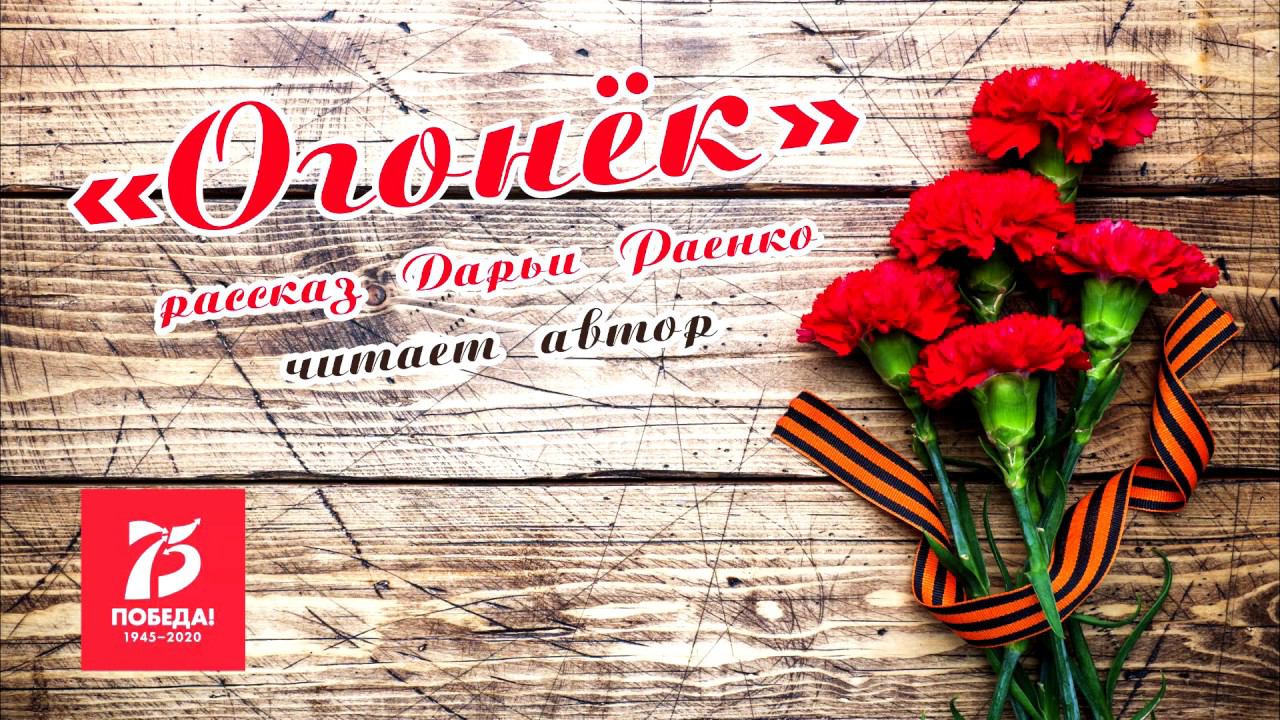 Этот рассказ – история любви, произошедшая во время Великой Отечественной войны с родственниками автора Раисой Шеншиной и Николаем Ненаховым. В преддверии юбилея Великой Победы специалист Централизованной библиотечной системы Дарья Раенко записала семейную легенду и назвала свой рассказ «Огонёк». Интересный факт – текст занял первое место в возрастной категории 18-35 лет в Интернет-проекте #ПРОГЛАВНОЕ, посвященном 75-летию Победы в Великой Отечественной войне. Предлагаем вашему вниманию запись авторского прочтения рассказа, сделанную для онлайн-марафона #75словПобеды.