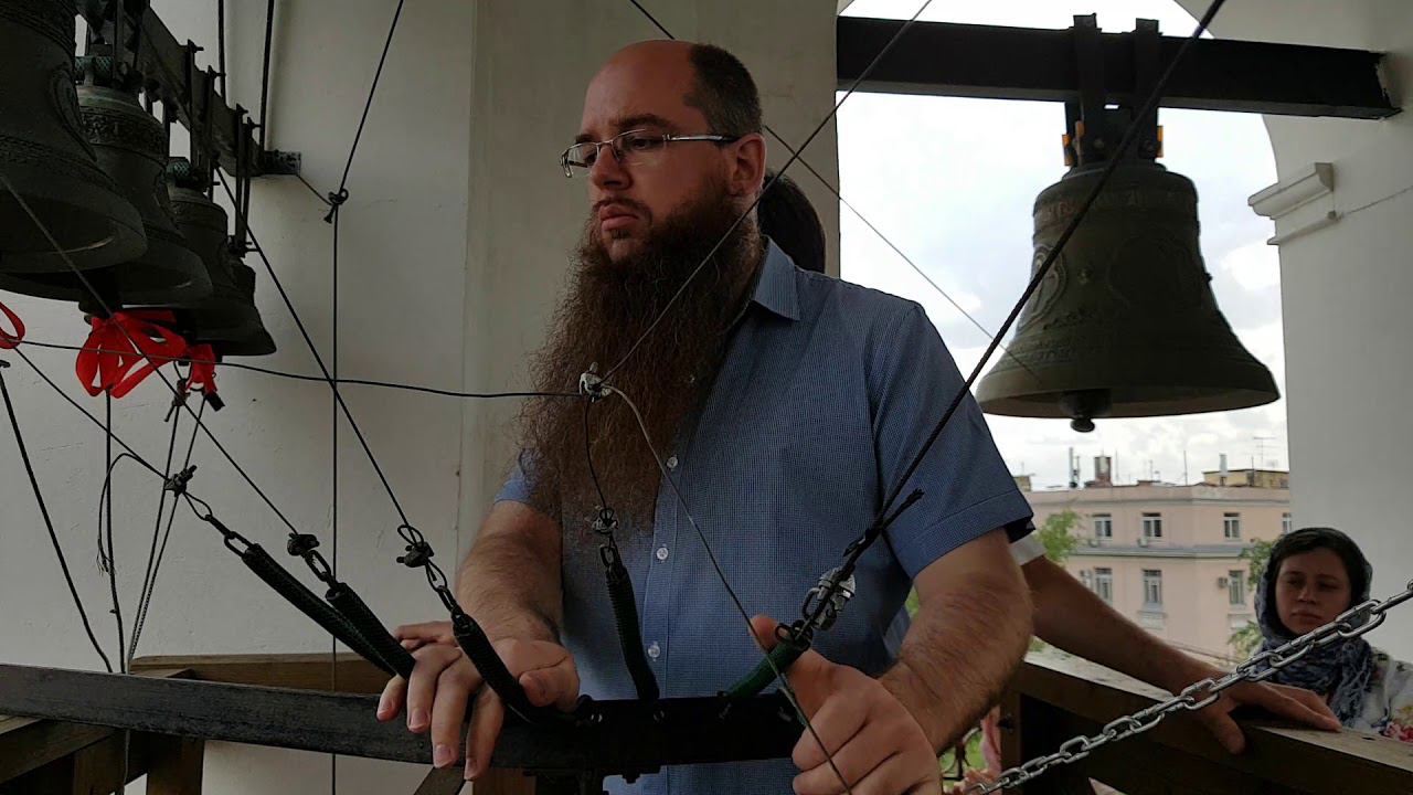 Звонарь Вячеслав Волхонский (Великий Новгород) на колокольне храма свт.Алексия митр.Московского в Рогожской слободе. Московский пасхальный фестиваль 12.05.2019