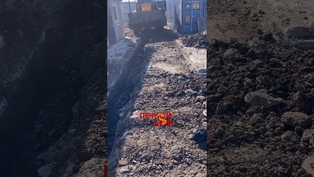 Трактором копаем троншею под лоток. 02-03-2026