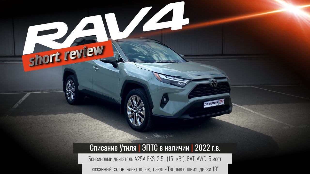 Год выпуска: 2022 Производитель: Toyota Motor Corporation, Япония Цвет: Lunar Rock (серо-зеленый) Двигатель: Бензиновый A25A-FKS 2.5L DOHC VVT-i, 151 кВт (6600) Трансмиссия: Toyota UB80F, Direct Shift-8AT Привод: AWD (полный) Диски и шины: Легкосплавные диски 19" с шинами 235/55 R19 Особенности комплектации: • Встроенные светодиодные противотуманные фары • Люк с электроприводом наклона/скольжения, открывается/закрывается одним касанием • Дверь багажника с электроприводом и с защитой от заклинивания • Отделка салона комбинированной синтетической кожей SofTex® • Рулевое колесо с кожаной отделкой • Двухзонный климат-контроль и и вентиляционные отверстия для задних сидений • Аудиосистема с дисплеем 8“ (Radio + RDS) с 6 динамиками, поддержкой Android Auto и Apple Carplay • Спойлер • Багажные рейленги на крыше • Окрашенные ручки дверей и корпусы боковых зеркал в цвет кузова • Повторители сигналов поворота в боковых зеркалах заднего вида • Аналоговая панель приборов информационным LCD монитором • Система выбора режимов движения (снег-грязь/песок-камни) • Светодиодные дневные ходовые огни • Светодиодные передние противотуманные фары • Светодиодные задние фонари • Камера заднего вида • Система бесключевого доступа Smart Key и пуск двигателя кнопкой • Электропривод сиденья водителя, с памятью • Электрорегулировка поясничного подпора сиденья водителя • Электропривод сиденья переднего пассажира • Круиз-контроль с управлением на рулевом колесе • Подогрев передних сидений • Подогрев руля • Подогрев зоны дворников • Коммуникационная система Bluetooth с голосовым управлением • Датчик дождя и света • Электронный стояночный тормоз EPB + AutoHold • Передние и задние стеклоподъёмники с функцией Auto • Монитор слепых зон (BSM)с предупреждением о перекрестном движении сзади (RCTA) • Контроль устойчивости автомобиля (VSC) • Систему контроля тяги (TRAC) • ABS+EBD+BA • Система предупреждения о столкновении с функцией обнаружения пешеходов (PCS w/PD) • Адаптивный радарный круиз-контроль (DRCC) • Оповещение о выезде с полосы движения с системой помощи рулевому управлению (LDA w/SA) • Система отслеживания полосы движения (LTA) • Автоматический дальний свет (AHB) • Система помощи при прохождении дорожных знаков (RSA) • Система мониторинга давления в шинах (TPMS) • Система управления раскачиванием прицепа (TSC) • Система помощи при спуске и подъёме (HAC, DAC) Автомобиль доступен к покупке на оренбургской площадке. Цена на момент публикации 4,1млн.р. Наш Телеграм: t.me/x10_express Наши адреса: • Оренбург, проезд Майский, 15 • Москва, Ходынский бульвар, 1 Телефон для связи и брони 8 800 700-82-35 (звонок бесплатный на территории РФ)