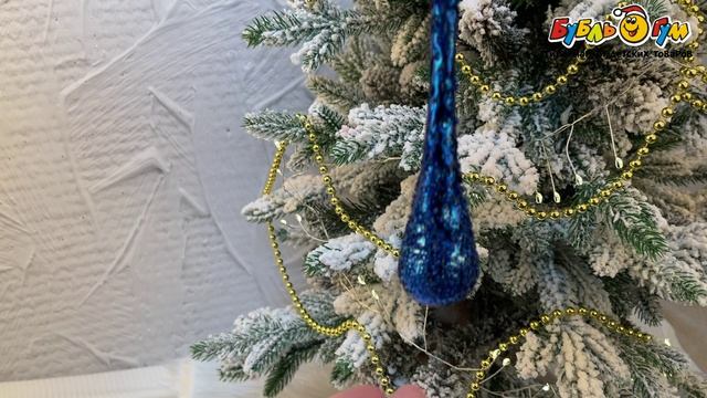 331672 Украшение елочное Капля рельефная глянцевая синяя стекло 15см
