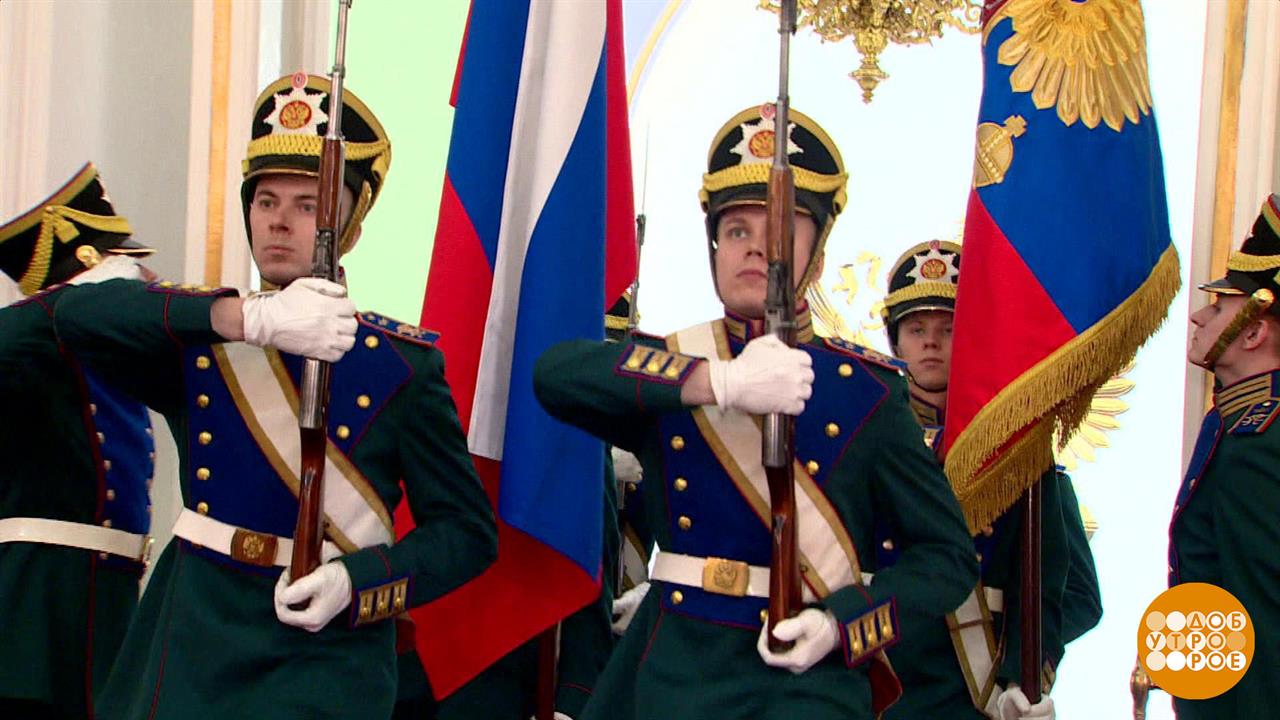 Прежде чем начнется торжественная церемония вступления президента в должность в залы большого кремлевского дворца внесут флаг России и штандарт президента. Следом в зал внесут специальный экземпляр конституции и знак президента. Подробный сценарий церемонии — тайна. Но точно известно, в момент поднятия штандарта президента над кремлем будет звучать Гимн. Готовится к церемонии и кавалерия президентского полка. Именно всадники первыми будут встречать автомобиль президента. Говорят, у коней даже подковы специальные, чтобы громче цокали по брусчатке! В 2018 году президент впервые в новейшей истории приехал на церемонию на российском авто. В этот раз президент приедет на новой версии отечественного автомобиля. Обновили все: от тормозной до обзорных систем. А закончится церемония на соборной площади, где традиционно президент примет парад Президентского полка. Комментируют начальник – художественный руководитель Ансамбля имени А.В. Александрова Геннадий Саченюк и командир батареи салютного дивизиона Дмитрий Громов.