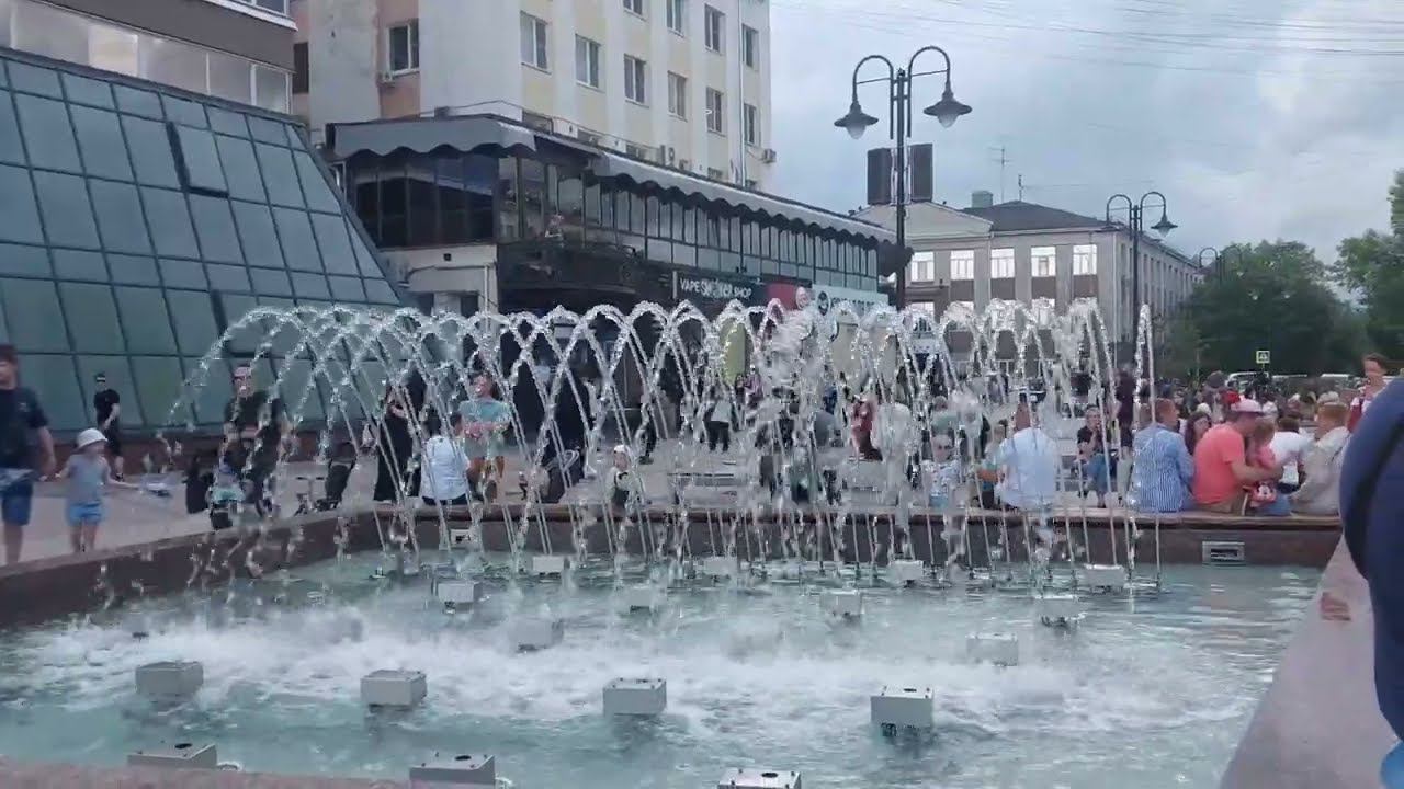 Посмотрела на фонтан/ детки хотят есть/ крупные капли дождя