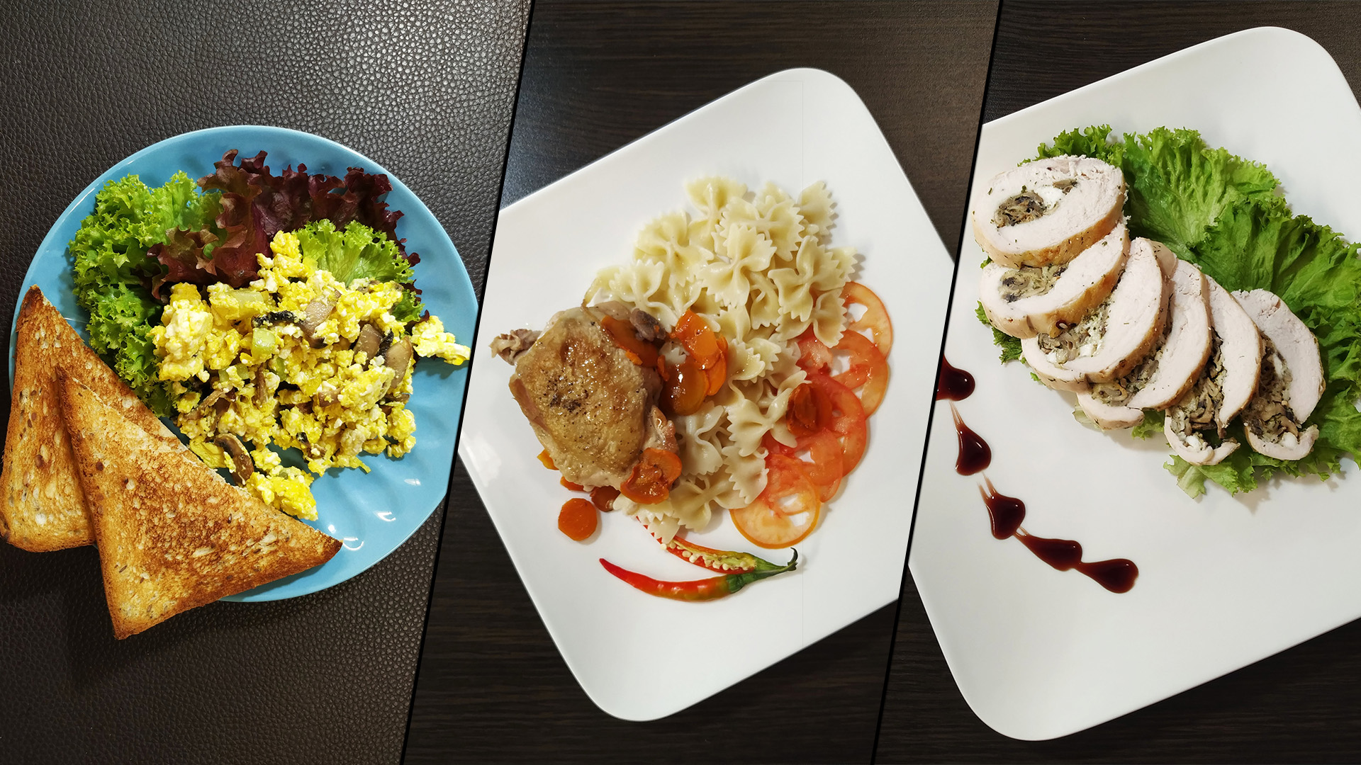 Меню на день. Меню на 1200 ккал. Трехразовое питание. Яичница болтунья Ингредиенты на два рецепта: Куриные яйца – 220 гр. Шампиньоны – 61 гр. Кабачок – 68 гр. Творог 5% – 50 гр. Подсолнечное масло – 7,8 гр. Итог КБЖУ для яичницы: 165,28 ккал; 12,62 белки; 11,94 жиры; 1,8 углеводы. Итог КБЖУ завтрак: 328,36 ккал; 21,94 белки; 19,57 жиры; 16,43 углеводы. Яичница болтунья – 152 гр. ; Салат листовой – 15 гр. ; Хлеб – 30 гр. Курочка с пастой фарфалле Ингредиенты: Куриные бедра – 1376 гр. Лук – 105 гр. Морковь – 150 гр. Перец черный горошек – 3 гр. Соль – 8,2 гр. Итого получилось бедрышек: 1160 гр. Ингредиенты для двух рецептов: Паста – 100 гр. Вода – 1000 гр. Соль – 10 гр. Итого получилось пасты: 240 гр. Итог КБЖУ для куриных бедрышек: 228,37 ккал; 25,6 белки; 13,09 жиры; 1,87 углеводы. Итог КБЖУ для пасты: 150 ккал; 5,4 белки; 0,6 жиры; 30,6 углеводы. Итог КБЖУ обед: 508,85 ккал; 43,11 белки; 19,5 жиры; 39,19 углеводы. Куриные бедрышки – 144 гр. Паста – 120 гр. Кармашки из куриной грудки Ингредиенты: Куриная грудка – 579 гр. Подсолнечное масло – 6 гр. Сыр 35% легкий – 52,8 гр. Шампиньоны – 170 гр. Творог 5% – 50 гр. Соль – 3 гр. Итого получилось: 550 гр. Итог КБЖУ для кармашек на 100 гр.: 174,91 ккал; 30,53 белки; 5,6 жиры; 0,59 углеводы. Итог КБЖУ ужин: 237,93 ккал; 41,4 белки; 7,6 жиры; 0,99 углеводы. Кармашки из куриной грудки – 135 гр. Листовой салат – 15 гр. Итог КБЖУ на весь день: 1075,14 ккал; 106,45 белки; 46,67 жиры; 56,62 углеводы + Для перекуса можно взять большое яблоко 200 гр. (104 ккал/ 0,52 белки/0,34 жиры/ 22,82 углеводы) или банан 100 гр. (96 ккал/ 1,5 белки/0,5 жиры/ 21 углеводы). #омлет #яичницуболтунья #курочкаспастой #кармашки #кармашкиизкуринойгрудки #еданадень #еда #готовимдома #готовимсами #готовимвкусно #бжу #кбжу