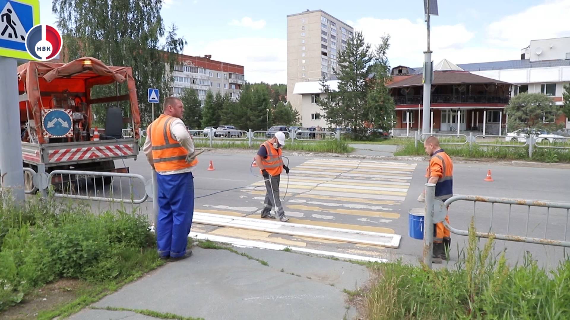 Сотрудники ДКС наносят дорожную разметку на улицах города