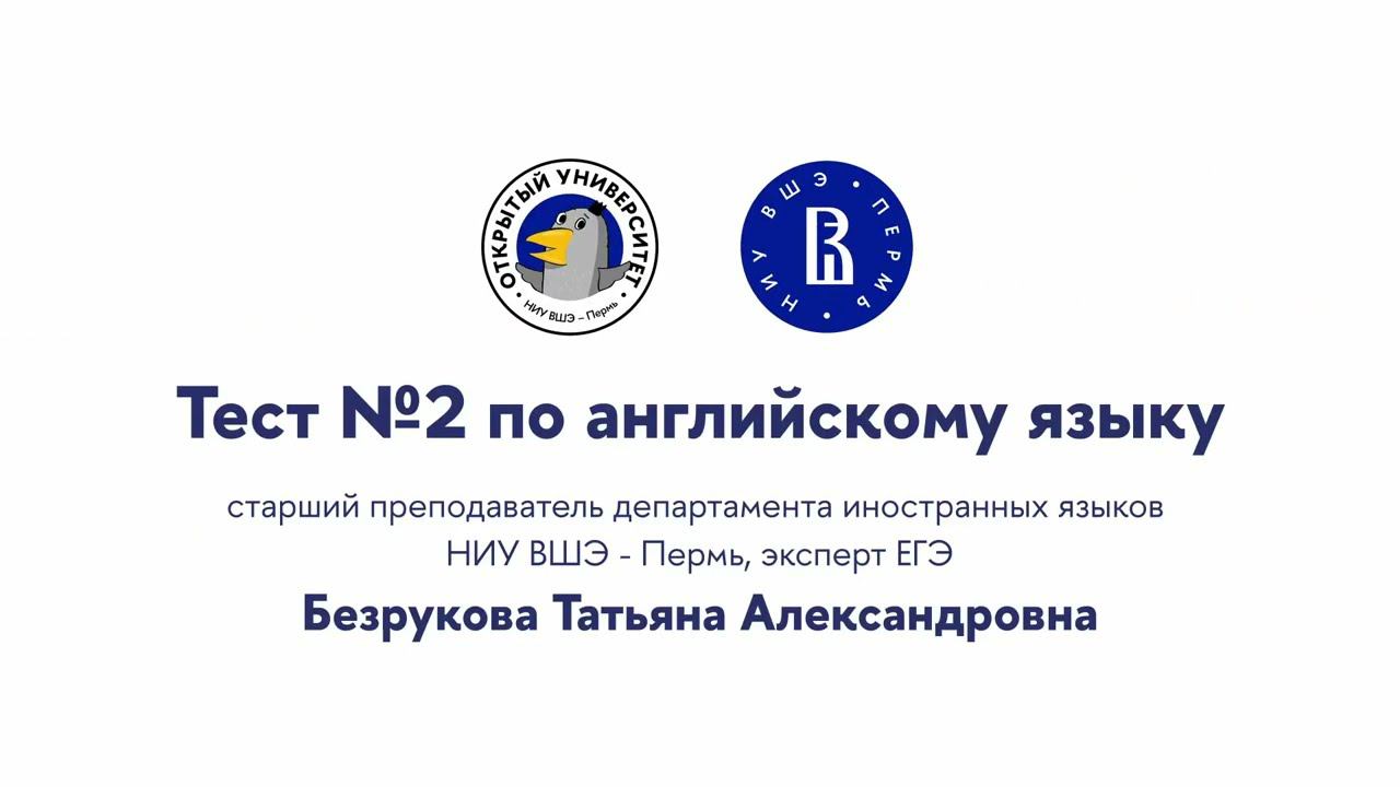Разбор проводит старший преподаватель департамента иностранных языков Татьяна Безрукова Ссылка на тест - https://forms.yandex.ru/cloud/639fc5ecd046887c3bc4d5f0/