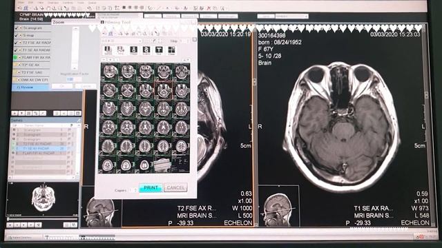 MRI Hitachi 1.5 Tesla Echelon: Actual Planning Brain Plain / (filming)