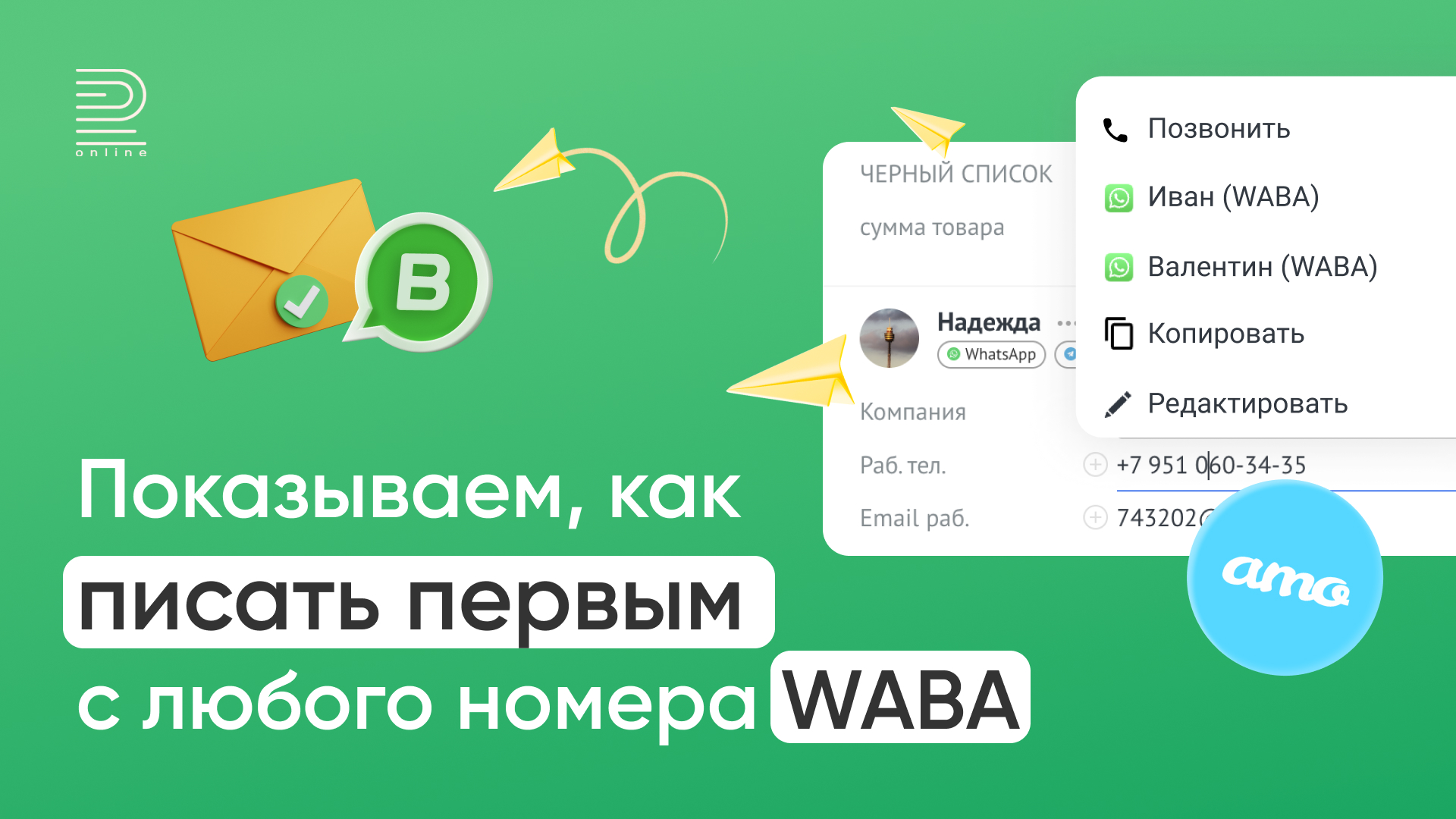 Как писать первым клиенту с любого подключенного WABA-номера в amoCRM: пошаговая инструкция