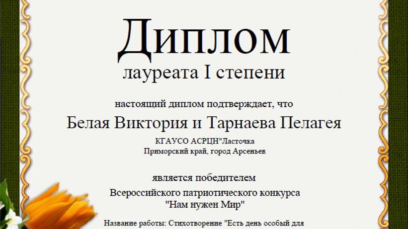 Стихотворение - победитель Всероссийского патриотического конкурса "Нам нужен Мир"