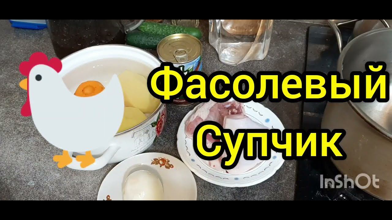 2 куриных бедра, 3 картошины, 1 луковица, 1 морковина, 1 банка фасоли. Картошку и бёдра сварить, лук морковь пережарить, в кастрюлю выложить 1 банку фасоли. Супчик готов !!! Приятного аппетита !!! А вкусно-то как !!! Подпишись и лайкни !!!