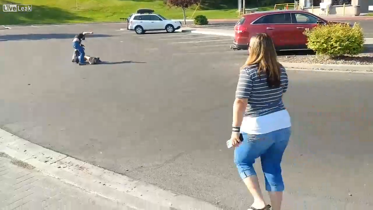 Уличная драка двух мужчин в США, штат Орегон, попала на видео очевидца.