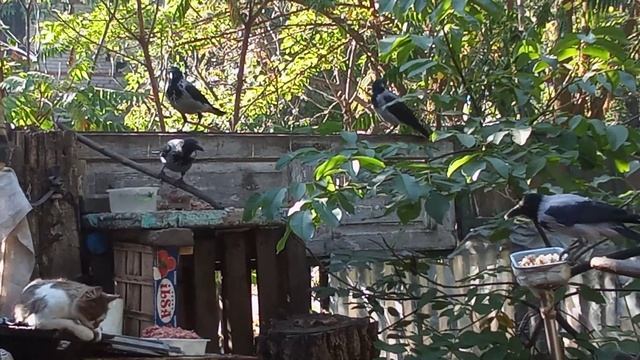 Семья вороны серой прибыла на ланч))