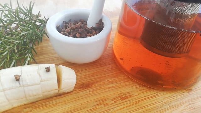 Ингредиенты : Банан - 1 шт. ( 140 гр.) Чёрный чай - 1 ч.л. Горячая вода - 600 мл. Гвоздика - 5 бутонов Сахар кандис или мёд. При желании, можно добавить молоко. Приятного чаепития!