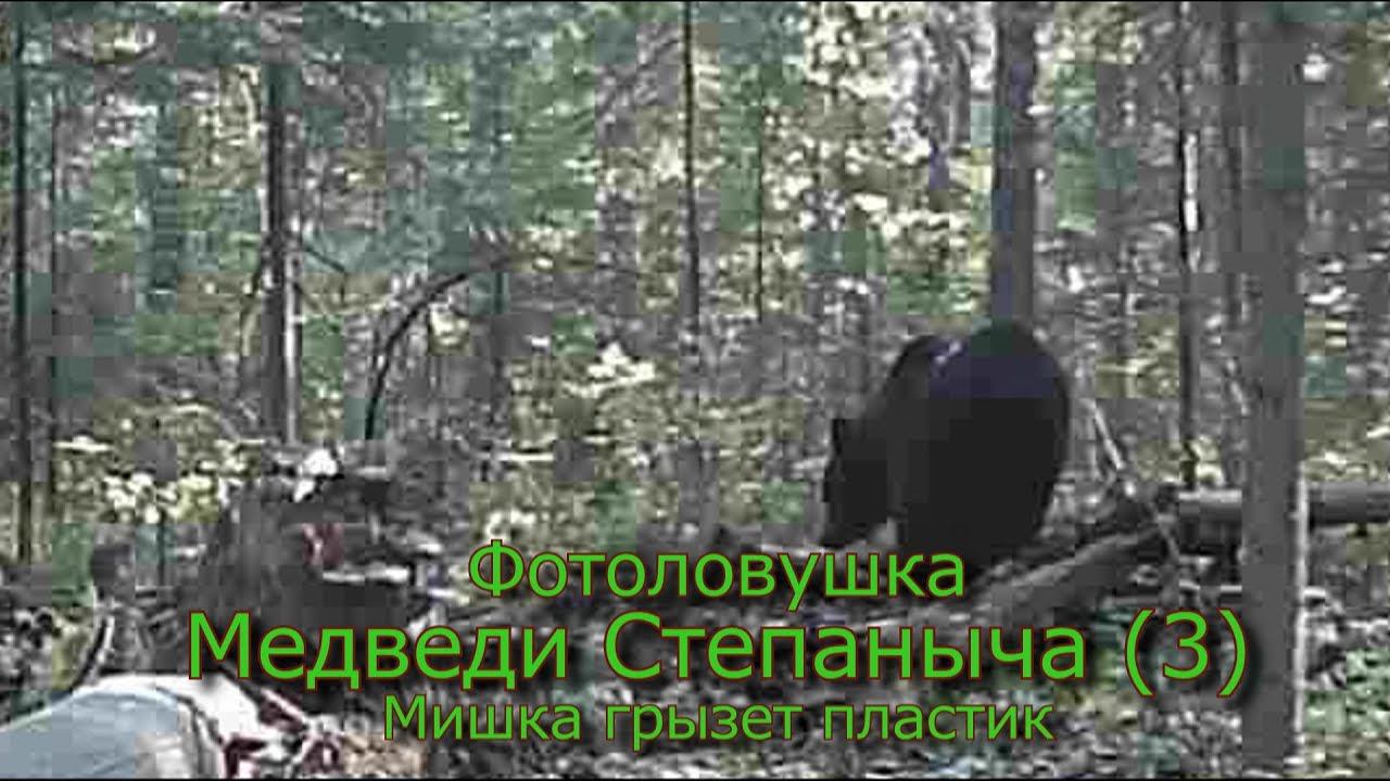 Фотоловушка Медведи Степаныча (3) Мишка грызет пластик