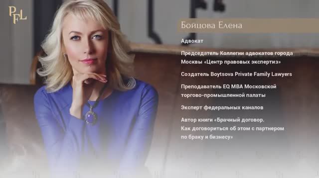 Пройди по ссылке, чтобы получить мою персональную консультацию со скидкой. Всего за 7000 рублей для подписчиков YouTube канала! ? http://elenaboycova.tilda.ws/page12html Адвокат Бойцова о себе, работе и семье с юмором Если вам интересно узнать ответы на эти вопросы и не только, смотрите данный ролик! #брачныйдоговор #брачныйконтракт #семья #АдвокатЕленаБойцова #Адвокат Меня зовут Елена Бойцова. Я адвокат, председатель коллегии адвокатов г. Москвы. На моём канале вы сможете узнать всю необходимую информацию о брачных договорах, наследовании, сделках с недвижимостью и не только. Подписывайтесь на меня в социальных сетях и будьте в курсе важной юридической информации! VKontakte: https://clck.ru/T6sdV Telegram: https://t.me/advokat_boytsova Связаться по телефону: 8(495)500-32-22 E-mail: cpe@lawex.ru ПОЛУЧИТЬ КНИГУ «Как защитить бизнес от семейных рисков, а семью – от рисков бизнеса» В ПОДАРОК https://www.pflaw.ru/downloads/book/BoytsovaPFL_whitepaper.pdf ПРИОБРЕСТИ КНИГУ «Брачный контракт» https://ridero.ru/books/brachnyi_kontrakt/ ПРИОБРЕСТИ КНИГУ «Наследственные истории» https://ridero.ru/books/nasledstvennye_istorii/ ПРИОБРЕСТИ КНИГИ с моим автографом: +7-495-500-32-33 Смотрите видео на канале “Адвокат Елена Бойцова” и обязательно подписывайтесь — https://clck.ru/T6sYU RuTube: https://rutube.ru/channel/1632527/