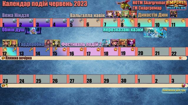 Календар подій червень 2023 в Імперії пазлів/Event Calendar June 2023 Empires & puzzles