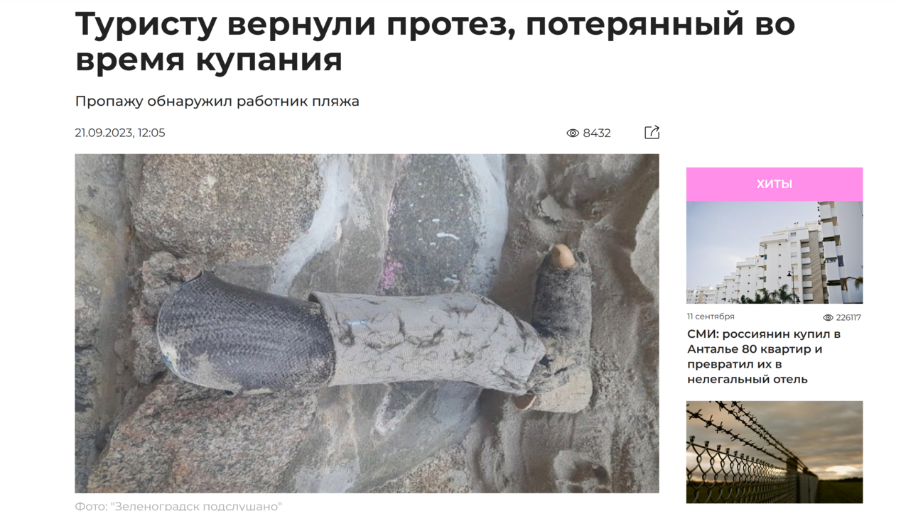 Новости туризма 21/09/2023 Туристу вернули протез, потерянный во время купания #туризм
