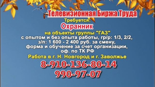 Вакансии и телефоны прямых работодателей в специализированной программе по трудоустройству "Телевизионная Биржа Труда" - г.НИЖНИЙ НОВГОРОД
